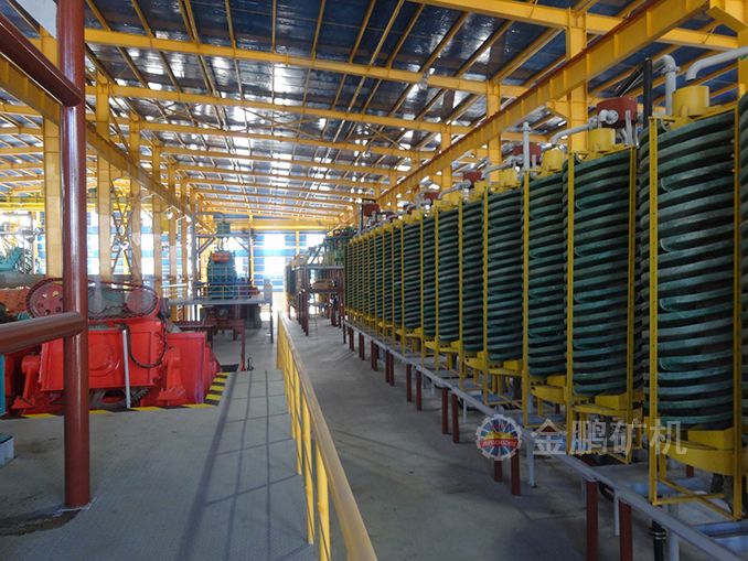2、預(yù)選:將20~4mm礦石進入重介質(zhì)旋流器預(yù)選,再經(jīng)一段棒磨后采用跳汰機預(yù)選,跳汰尾礦用2mm振篩篩除+2mm作為廢棄尾礦,-2mm進入搖床選別。