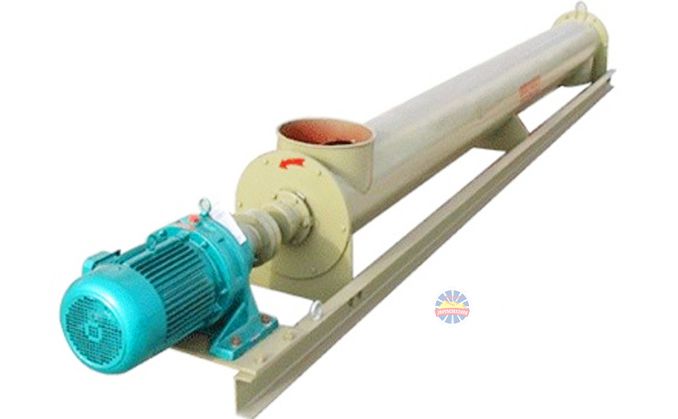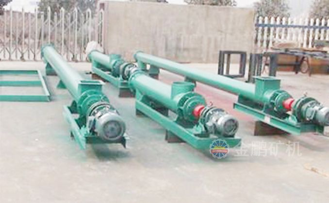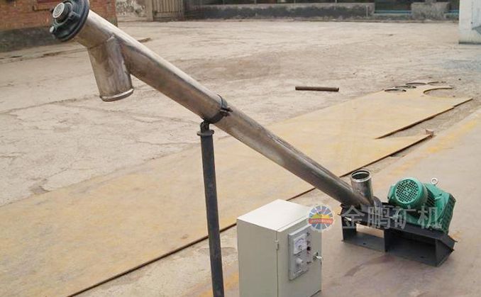 單管螺旋給料機由電機與減速機帶動主軸旋轉(zhuǎn),螺旋葉片盤旋在主軸上,把落入圓形殼體內(nèi)的物料向前推移,排出殼體。